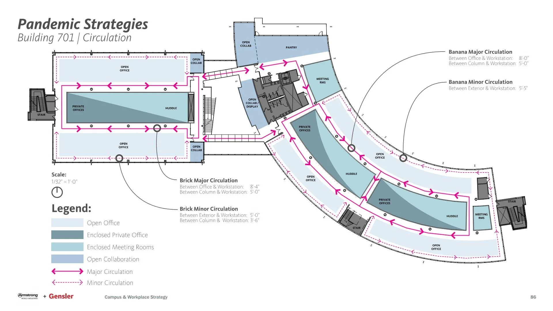 Armstrong World Industries partnered with Gensler to transform their existing campus to reflect their forward-thinking culture and innovative design and manufacturing heritage. Optimized for workplace flexibility and digitalization, the workplace will reflect AWI’s unflinching leadership and pioneering spirit on a campus that is as bold and innovative as the AWI brand.